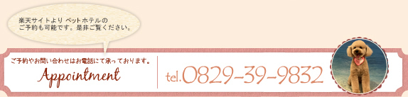 ドッグホテルやグルーミングのご予約や当店へのご質問などございましたら、TEL・E-mailより